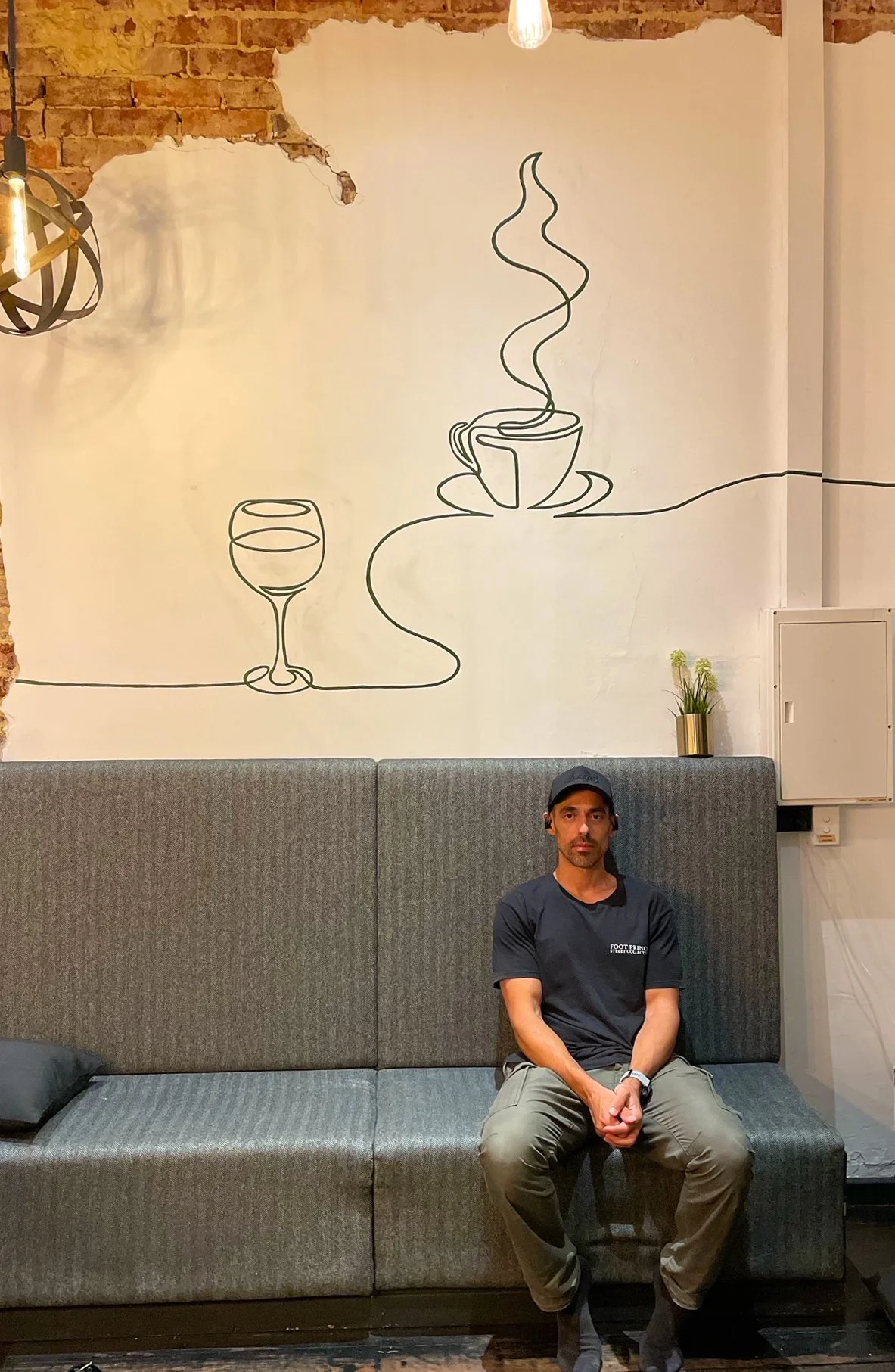 The brief for this piece was fairly simple, to show that P&M Cafe Wine Bar is open for breakfast, right through to late night tapas and wine. The owner wanted to represent this visually while keeping the concept simple, yet eye-catching. I designed this single line mural piece and it hit the mark perfectly. So much so that it has now carried through to the majority of their branding. In addition to this piece, I also completed a separate wall mural incorporating a chalk board for daily specials. Both pieces were completed using acrylics.